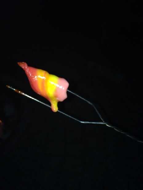 Una vez que los destellos han comenzado a gotear, cuidadosamente llevarlos fuera del fuego. Dejan enfriar durante al menos 2 minutos.