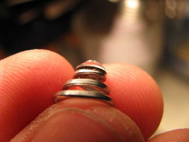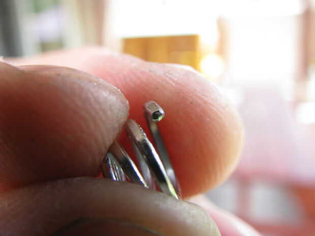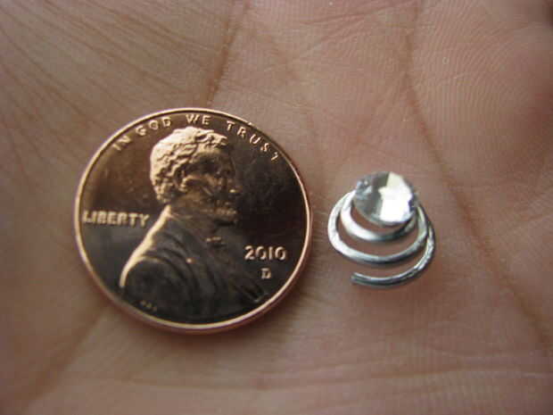 Utilice alicates de punta de cono para separar las bobinas. Mantener separación hasta que tenga una plataforma sólo lo suficientemente grande como para fijar el cristal. Ajuste la bobina hasta el tamaño y el archivo de cualquier borde filoso.