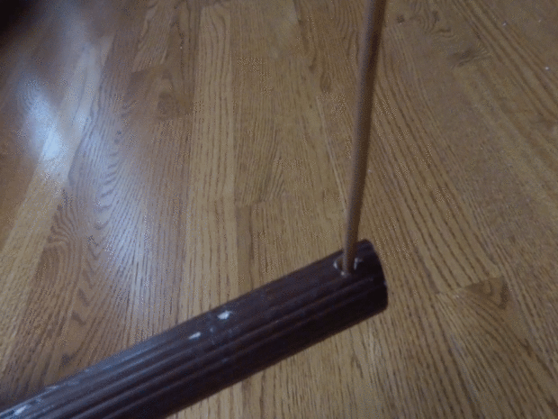 Empezar por hacer una herramienta bobina tomando un taco de madera de 1.5-3 in y 1/2 de perforación de agujero directamente a través de la espiga en el extremo.