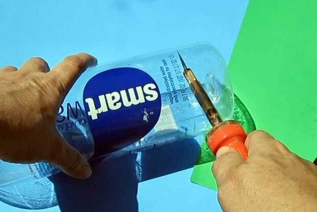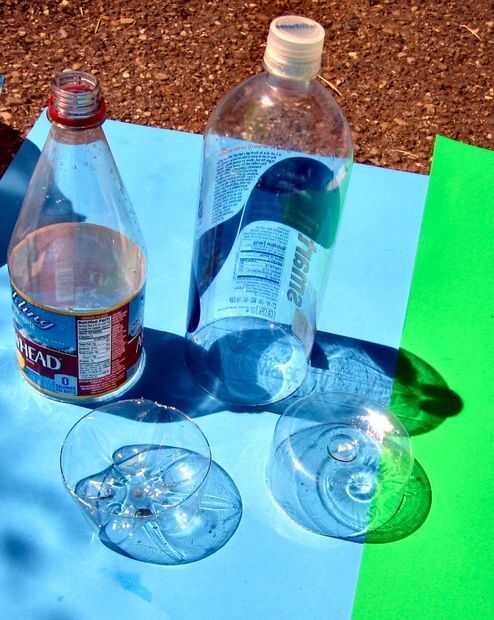 Reducir poco a poco a través de las botellas de plástico, eliminación de las porciones inferiores como se muestra.