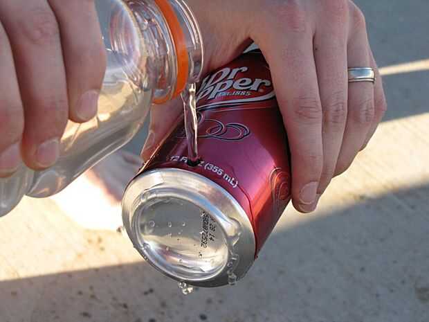 Llene la lata hasta que se siente sobre todo a mitad de camino (6 onzas). Si es todo lo completo, la acción de ebullición obligará a agua sucia en agua limpia de lo contrario y tendríamos que empezar.