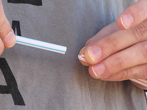 Cuando se une dos pajas, habrá un poco de un "hoyuelo" en la paja arrugado o fruncido. Empujar suavemente juntos hasta que el hoyuelo es cubierto por la paja, lo que es tan herméticas como sea posible.