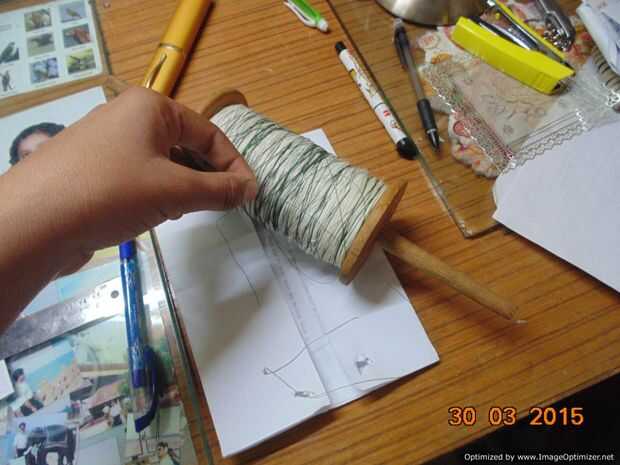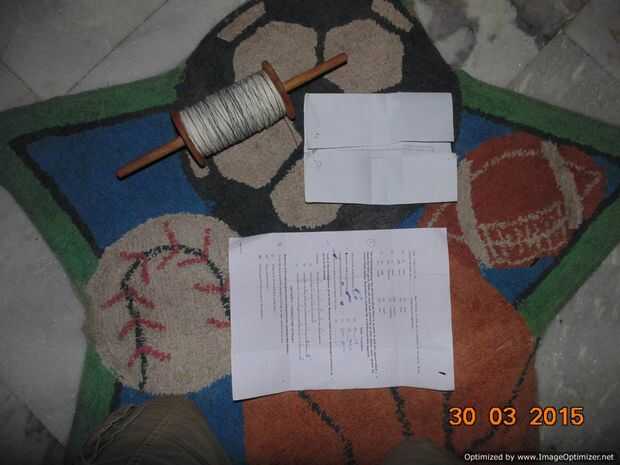 - Ahora tienes que tomar un trozo de cuerda (de longitud de su brazo y pase a través de los agujeros como en la imagen y un nudo simple para hacer una especie de bucle.