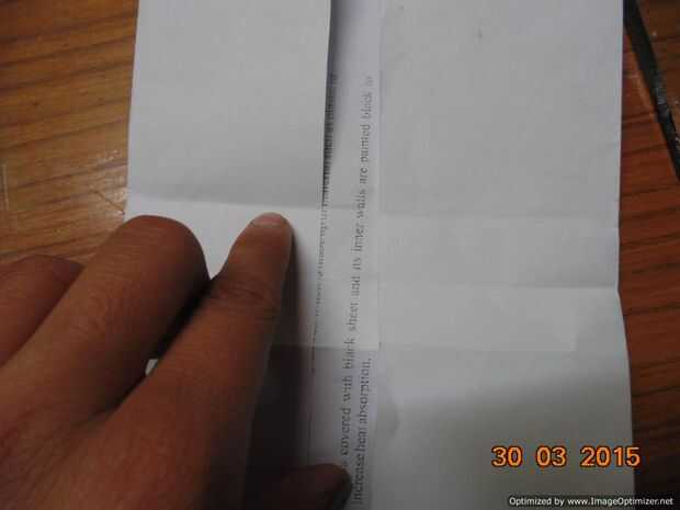 - Pliegue de una manera tal como se especifica en la imagen. (Mantenga el papel en el paisaje y doble igualmente de ambos lados dejando unos 2 cm de espacio del centro)