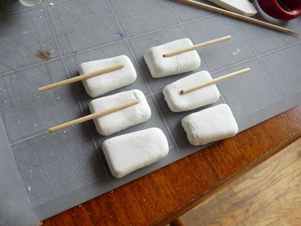 Usé la arcilla de aire seco desde el proyecto de la máscara para hacer los detalles duros en la parte delantera de la armadura. Yo sólo había moldeado les a mano. Corte pinchos de bambú para hacer las proyecciones. Una gota de pegamento los mantiene seguros. Pinté todo plata cuando la arcilla estaba seca.