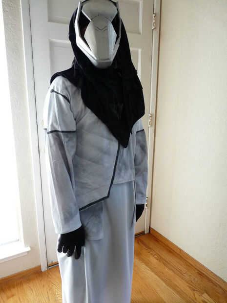 Yo seguí probando el traje a mi hijo a conseguir el posicionamiento de todos los detalles derecha. Les marqué para arriba con un marcador claro, alfileres o cinta adhesiva. Usé cinta para marcar la hoja en el siguiente paso, por lo que pude averiguar el posicionamiento.
