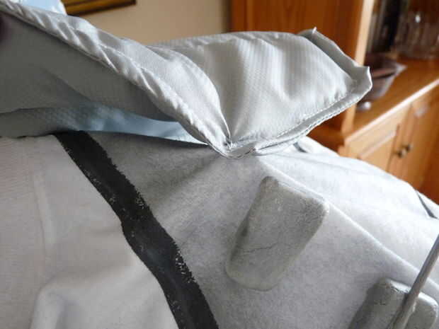 Para sujetar las almohadillas de hombro, poner en la camiseta y averiguar la colocación. Deben ser muy cerca el collar. Perno en su lugar hasta que cosa. Retire con cuidado la camisa y mano coser cada uno de los cuatro puntos (dos en cada almohadilla) a la camisa. Mano el borde del cuello en lugar de la tachuela y con una máquina de coser de 2". No coser el lado que da hacia fuera. Esto le dará una mirada agradable de la Plaza militar.