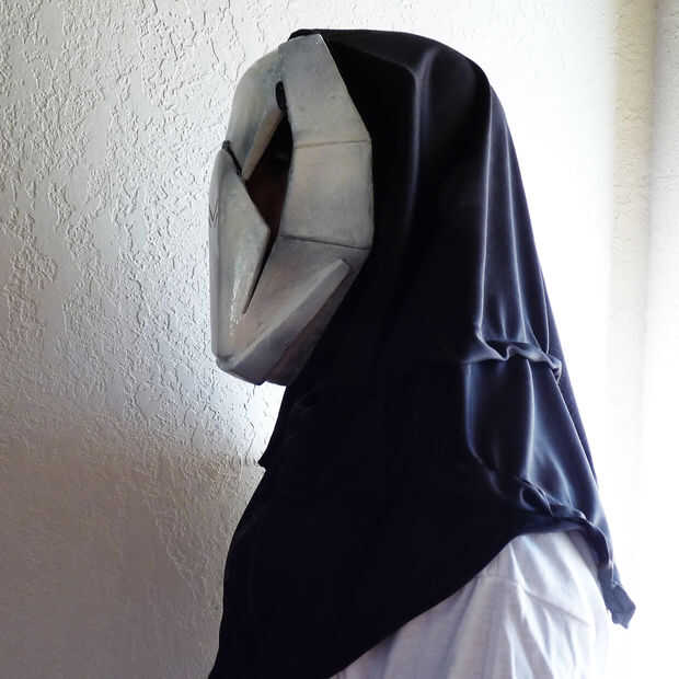 Cuando acepté que a mi hijo una máscara de altavoz para Halloween no me di cuenta de lo que estaba metiendo. El gran desafío era para que se vea como cara completa blanca del personaje digital la máscara y poder ver hacia fuera. Había muy poco materi