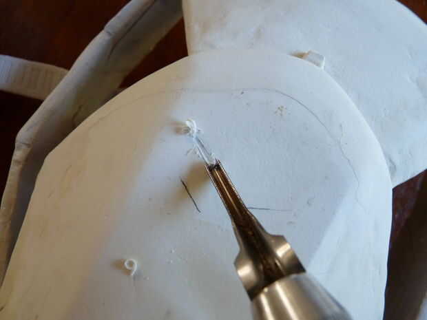 Bosquejó los detalles primero, luego les tallada y dibujó en el color con un rotulador negro fino. Usted puede simplemente dibujarlos en si no tiene una herramienta de talla.
