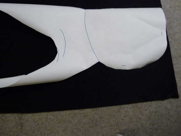 2) doble a la tela por la mitad. Recorte la plantilla y colóquela en la tela negra. Cortar la tela. Vas a tener dos piezas que emparejan.