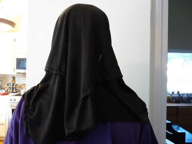 Hice el corte y la fijación para conseguir la forma correcta mientras que mi hijo tenía la máscara. Entonces me fui hacia adelante y hacia atrás a la máquina de coser.