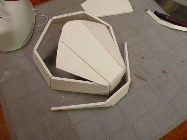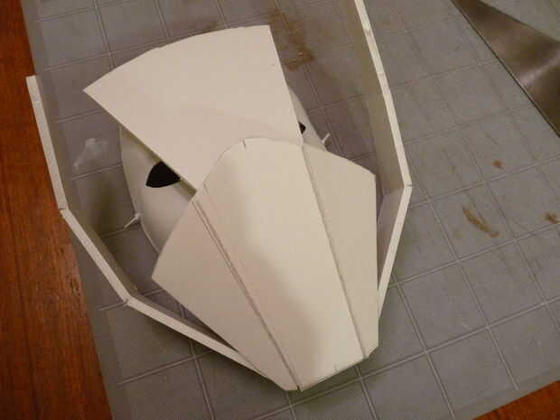 Sé que tendré un problema con la forma triangular sobre los ojos, pero necesito conseguir la base estabilizada antes de trabajo una solución. Si esta máscara era una decoración estaría bien. Pero ya que se va usar, todavía tengo que averiguar el problema de ver si lleva la máscara.