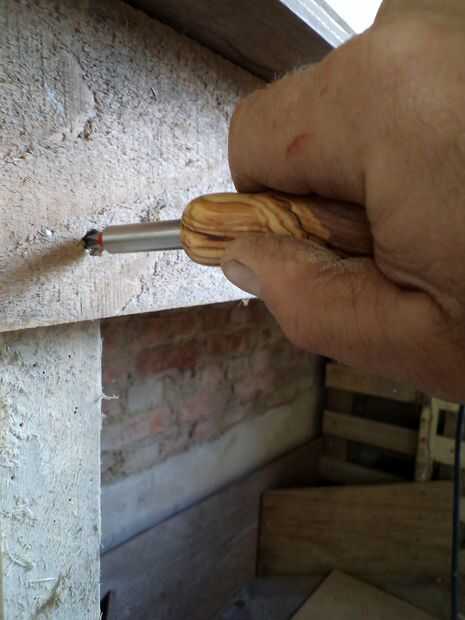 Poner una bola pequeña de 'dren sellador' en el portapuntas. Este material no se duro y conseguirá el tornillo poco sólido bastante en lugar - pero no lo suficientemente sólida para conseguir el pedacito prisoned para siempre. Sólo un leve alza smash en la palma de tu mano y gratis es ese tornillo.