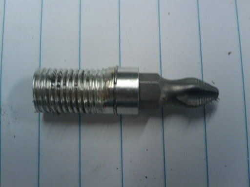 Corte del portapuntas magnético con una sierra para metales. Luego lo pase con un dado de 3/8-24.