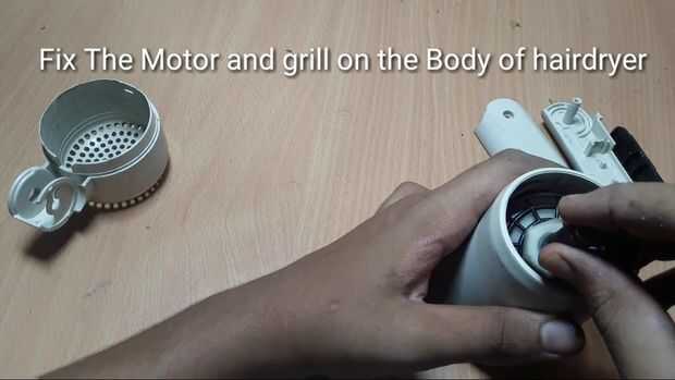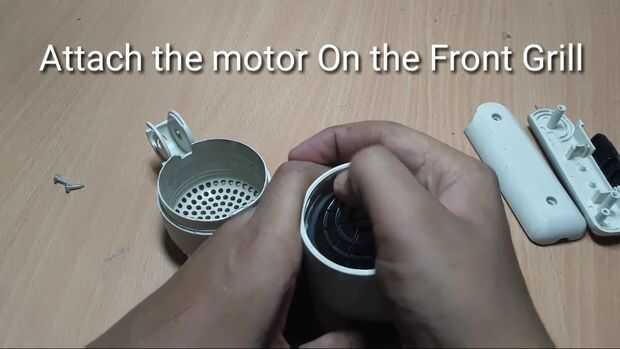 6) luego inserta el motor dentro de la parrilla y apretar la tuerca del motor.