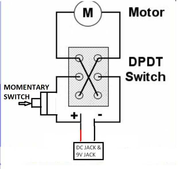 3) el interruptor momentáneo, Dpdt switch & 9v portapilas de los lados de la manija