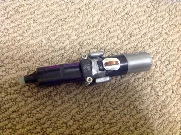 La óptica es lo que convierte la luz de los LED en las barras de luz para el emisor. Si tienes pegamento extra caliente, quienes actúan como enormes cables de fibra óptica. Se utilizó paja de color azul. Necesita 5 secciones, una en el centro y uno para cada LED. La jaula alrededor de las barras, usamos cinta aislante. Pegamento en el LED antes de soldar los cables, como los mantiene en su lugar.