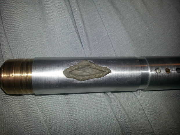 Había modelado un ojo en arcilla en la manija de este sonic después de ojo de un dragón. Luego echó en resina plástica, poner en su lugar con epoxi y pintado.