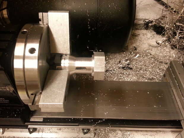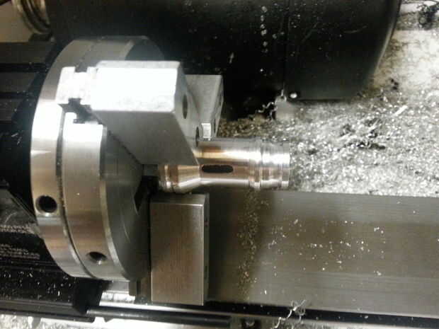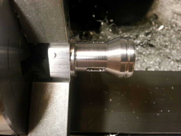 La superficie inclinada en la primera imagen fue hecha con mi herramienta de corte derecha naturalmente mientras que progresó el corte, cada vez que hice un nuevo corte de la herramienta de corte funcionaría en este hombro inclinado.