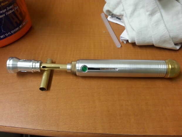 Después de la parte que muele quita la varilla de latón y la convirtió hasta su forma final.