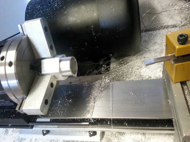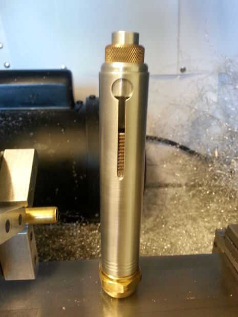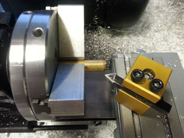Las dos últimas imágenes muestran girar un tubo de latón a la longitud. A menudo cuando necesito un final liso a una pieza de tubo de cobre tirada para arriba en el torno y ajuste a la longitud con una operación frente a