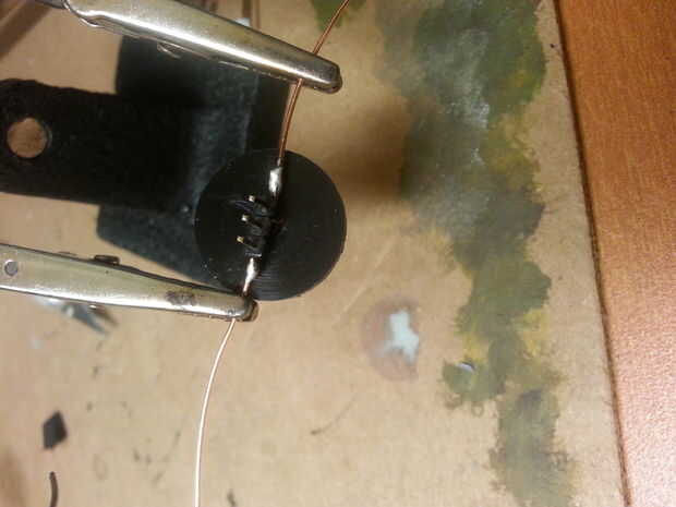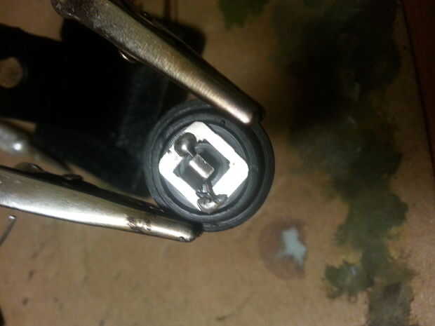 Entonces había soldado un cable a cada uno de los 2 pins externos para que le presiona contra los lados de la manija cuando la tapa esté en su lugar, brindando una sólida conexión a terminal negativo de la batería.