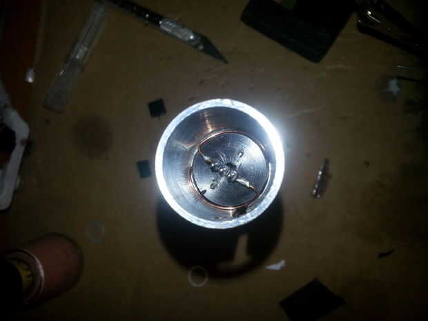 El terminal negativo de la batería es una tuerca abocardada de latón modificado, modificada al igual que paso 10: