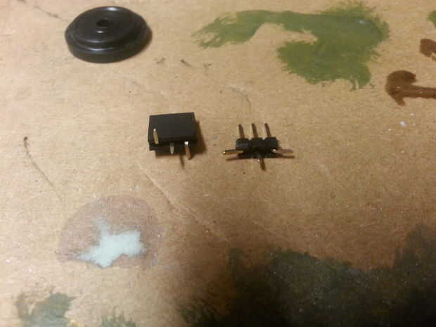 Tomé una cabecera de tres clavijas macho y recorrió la patilla central la derlin donde fue soldado a un terminal de la batería.