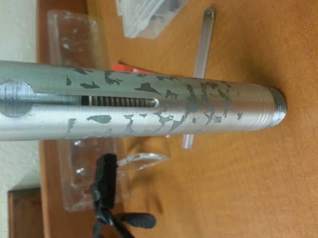 Sumerja el hisopo en la solución de sal y arrastre lentamente a través del área a ser grabadas. Silbido y lentamente corroer el metal. La tensión más alta utiliza el más agresivo será su grabado, pero también producirá gas de cloro que huele terrible y daña cualquier tejido suave toque (pulmones, ojos, etc.)