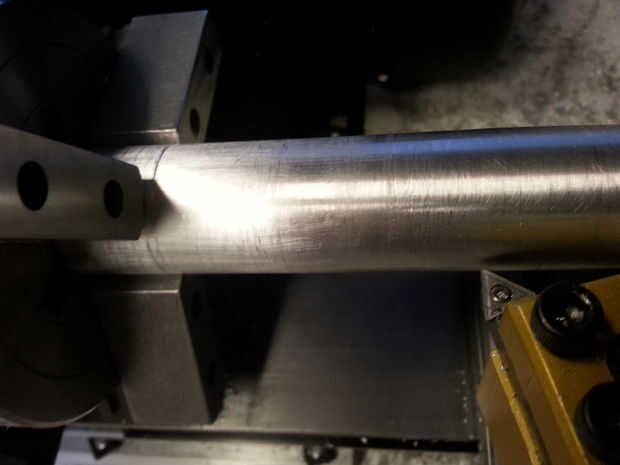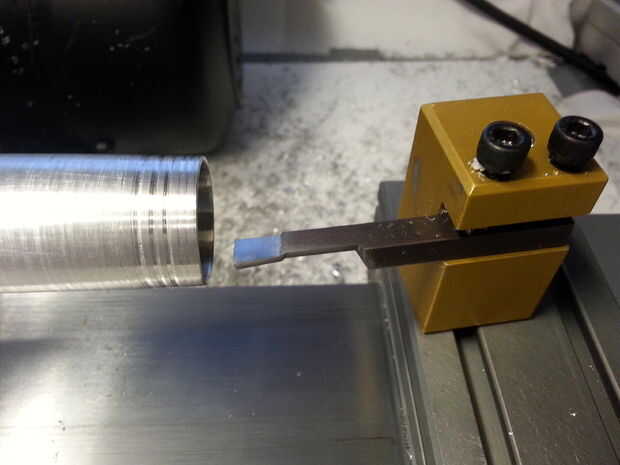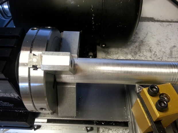 El compartimento de las pilas de mi sonic es un pedazo de tubo de 1/2 "X 4" de negro (plomería). Mientras que el tubo negro es ideal para la celebración de las baterías es demasiado estrecho y no visualmente bastante atractivo para mis gustos. Para remediar esa situación compré algún tubo de aluminio (amazon o una ferretería local) que fue ~.85 pulgadas en diámetro y 1 pulgada de diámetro exterior. Yo rápidamente limpió para arriba en mi torno tomando dos 5 milésimas y fuera del exterior bastante de diámetro interior para que mis tubos de plomería cabrían dentro.