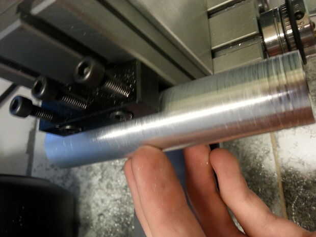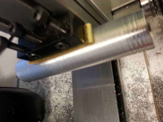 - Con ponga un taladro de centro en las mordazas del torno (o un collar si tienes uno. Ésos son los mejores)