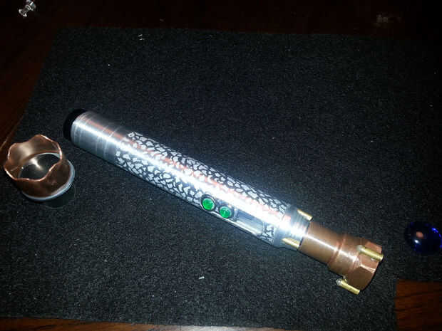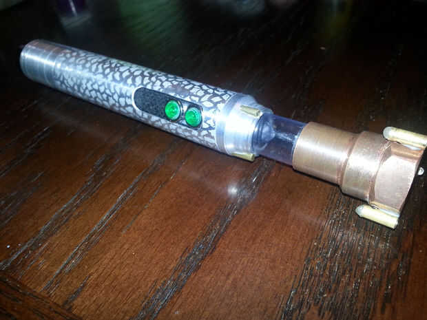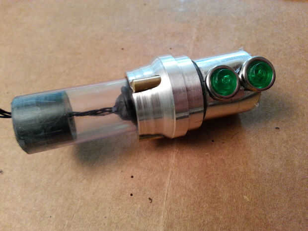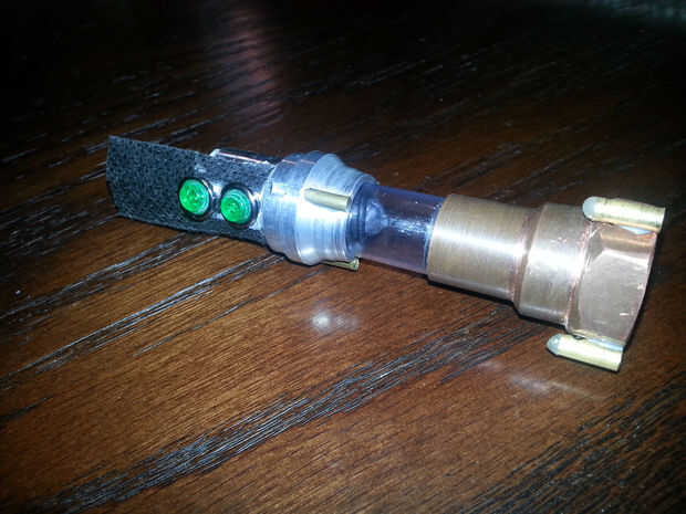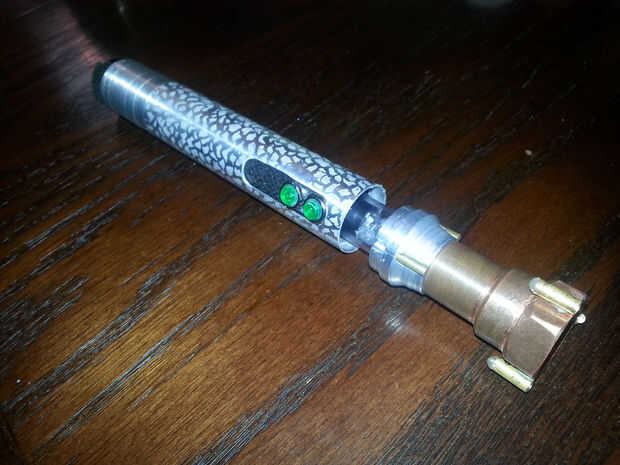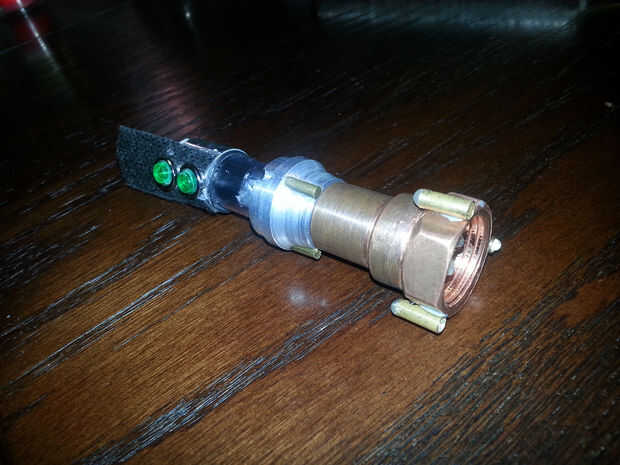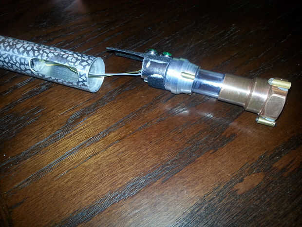 Una vez que la batería fue conectada al circuito (y el circuito probado) se deslizó todo juntos y me ajustaron la parte superior de la manija en su lugar.