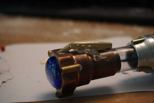 Con las piezas de mano solía JB Weld epoxy para el emisor. Para evitar que se mueva mientras el epoxi secado que utilicé un poco de pegamento caliente temperatura baja para mantener en su lugar.