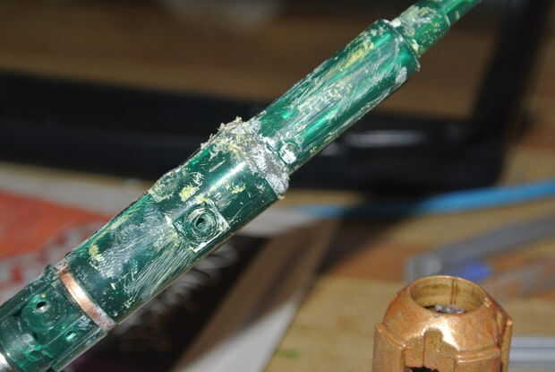 También usé mi pistola de soldar para fundir apagado o texturizar áreas pequeñas del destornillador. Mirando hacia atrás, esto fue un poco exagerada pero lo hace como se ha caido unas cuantas veces!