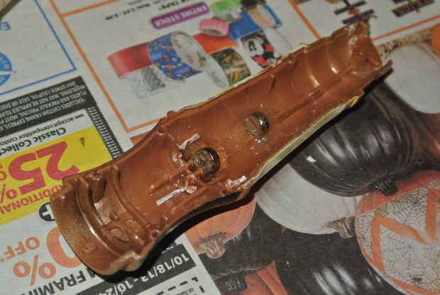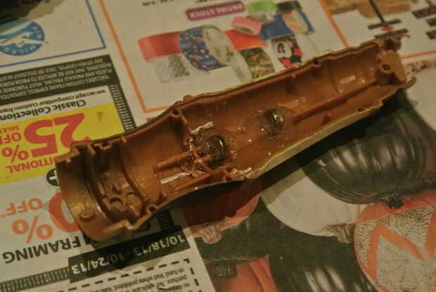 El destornillador tiene imanes montados en la base de la pieza verde y un correspondiente punto en el interior del cuerpo para mantenerlo cerrado. En las imágenes es incorrecta. Realmente tuve que rasgar todo esto hacia fuera más adelante porque era en la forma de la pieza deslizante y no mantener que nada cerrado en lo más mínimo. Lo usé en realidad era 2 imanes de tierras raras en la pieza verde y 8 imanes de tierras raras, alineados en el interior del cuerpo. Estaba usando imanes de 1/4", te recomiendo ir con un tamaño más grande.