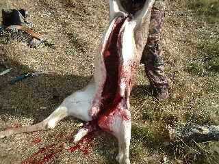 Levante el ciervo por su cabeza tan alto como puedas y arrastrarlo unos pies con el fin de drenar la sangre a través de la abertura pélvica. Dicen que entonces colgar el venado en un cobertizo o un árbol para asegurarse de que la sangre ha goteado fuera. Si ha perforado el estómago, asegúrese usted lávelo hacia fuera con una manguera.