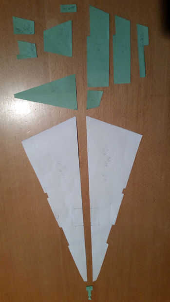 He escalado y mide la geometría básica de la modelo de origen, transferencia del papel de construcción dimensiones y redacción de cada superficie a ser cocido al horno. Luego, cuidadosamente corté cada forma hacia fuera. Tenga en cuenta que debido a la simetría de la nave, muchas plantillas de papel pueden usarse para 2 o incluso 4 piezas de pan de jengibre.