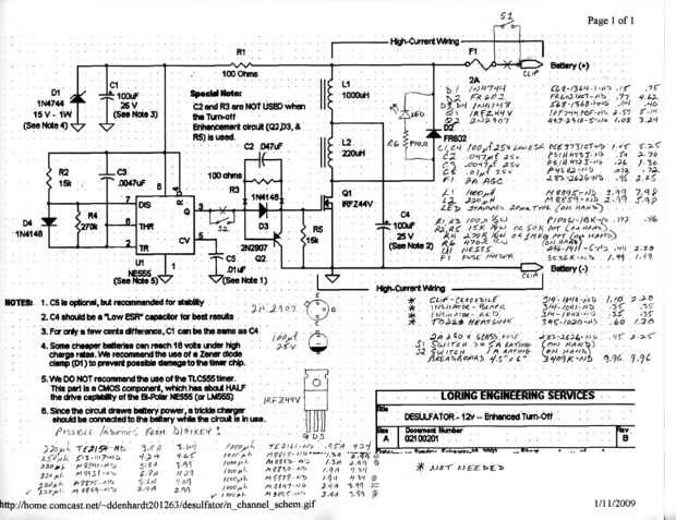 La lista está completa salvo por algunas partes (dos ollas, dos resistencias, dos interruptores, un LED, un FET y algunos ojales y remaches pop) que rescatado de mi caja de chatarra. No dude en hacer lo mismo, sólo a los valores en el esquema lo más posible. Tenga en cuenta que C4, un condensador electrolítico de 100uf 25V, debe ser del tipo "bajo ESR" (resistencia de serie equivalente) para limitar su tendencia en esta aplicación para calentarse. Si usted elige utilizar macetas de adornos en vez de resistencias R2 y R4, como hizo, ten cuidado con los ajustes como C4, D2, L1 y L2 pueden calentarse mucho si se hace el chip 555 para enviar demasiado amplia un pulso en la etapa de salida. Los valores de resistencia en el esquema deben programar el chip 555 salida impulsos de anchura adecuada y limitar cualquier acumulación de exceso de calor, sin embargo. Discutiremos esto más en los pasos de prueba de humo.