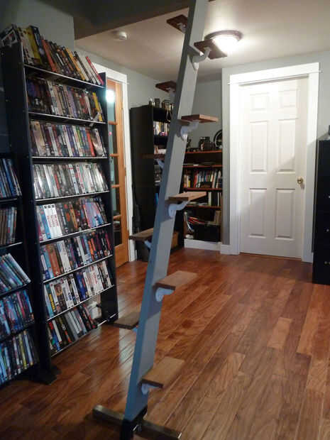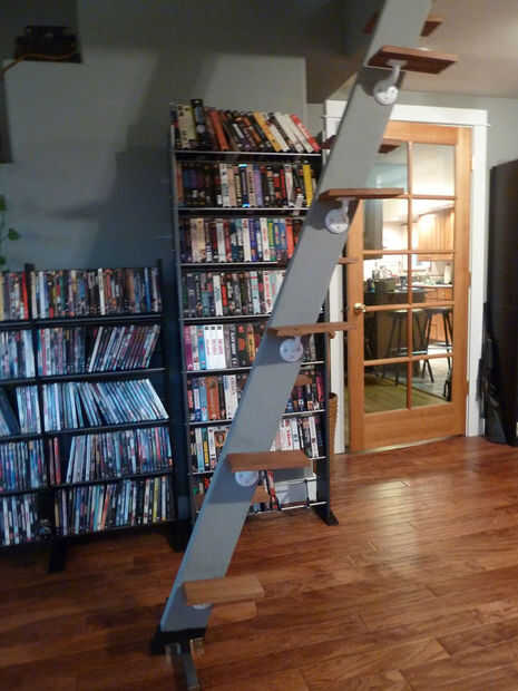 Lo que nos lleva a la primera (tal vez sólo, vamos a ver) casa - ible Mod mi mamá... una escalera escamoteable. Mi dormitorio temporal es en el espacio loft sobre la oficina, y yo simplemente no puedo ir alta. Escaleras tradicionales son cerdos de espacio de piso y escaleras comunes son tan aburridos.