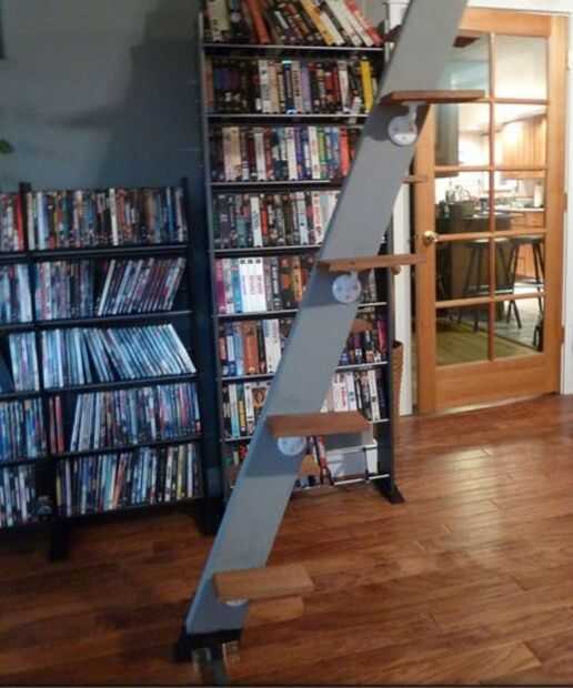 Poner algún forro esponjoso/agarre estante en la parte inferior de la escalera (soportes de 2 x 6 y estante) para ayudar a proteger el piso de abajo.