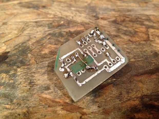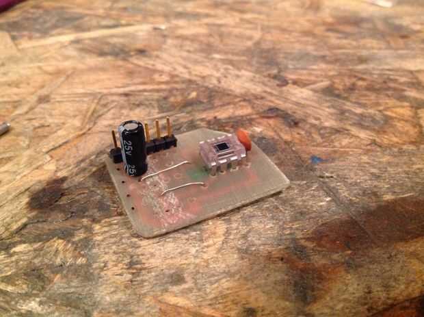 Como nota lateral, usé puentes en el diseño de mi tabla. A veces, al encaminar los rastros físicos, es necesario tener una traza otra Cruz sin tener contacto eléctrico. Un puente es un alambre que va físicamente sobre el rastro, permitiendo que esos diseños trabajar. Solía algunos trozos de alambre de núcleo sencillo conectan cojines (y pines 4 y 5 de la OPT101) sobre otras huellas, como se ve en algunas de las fotos. Es un pequeño Consejo para diseñar tus propios circuitos.