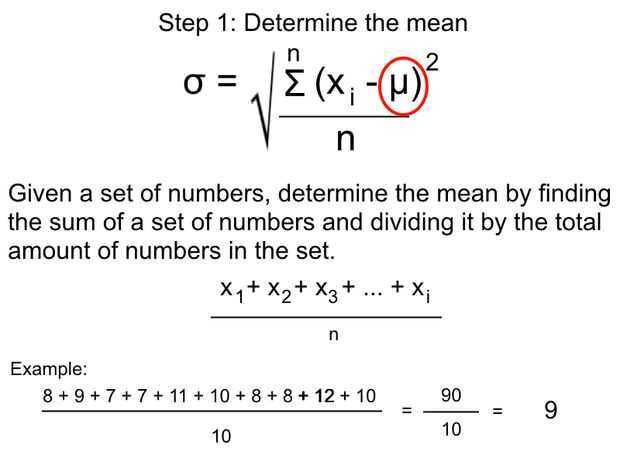 Cuando se administra un conjunto de valores numéricos para encontrar la desviación estándar, la primera cosa a hacer es encontrar el promedio de determinado conjunto de valores numéricos. La media se representa por el símbolo griego "mu" (μ) y le será útil más adelante.