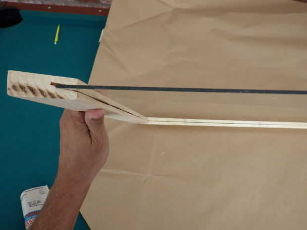 Cuadro 4 muestra cómo se hace la ranura. Tenga en cuenta que la sierra estaba apagado cuando se toma la foto. Este procedimiento es muy peligroso!!! Guíese por restos de madera como se muestra en la figura 5 por lo que sus manos nunca cerca de la hoja.