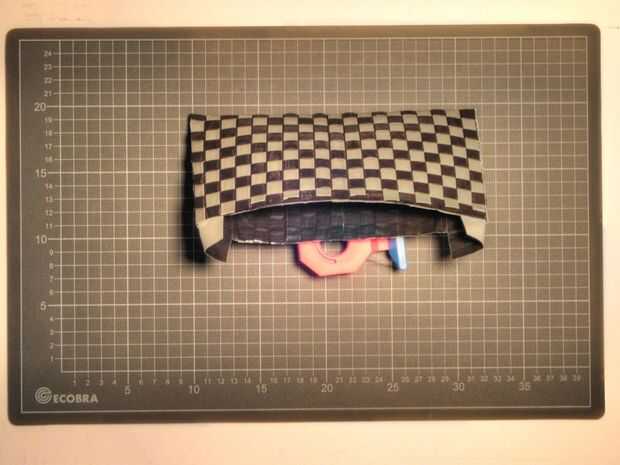 Corte dos tiras de cinta negra, ligeramente más larga que la altura de la mitad del monedero.
