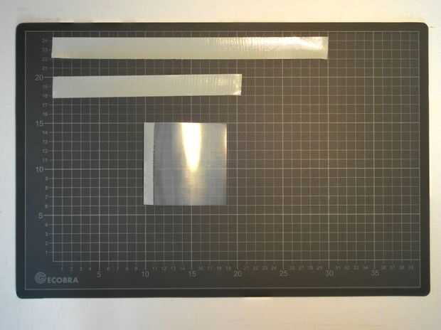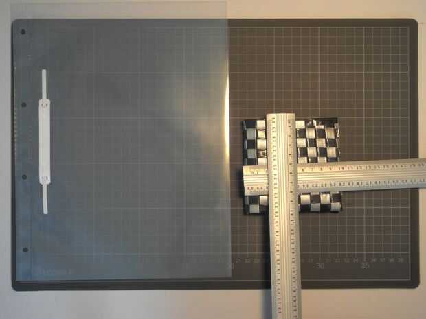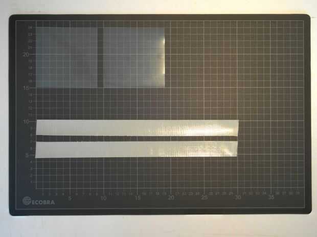 Tomé una tira larga de 9cm de esta cinta (ahora 2,4 cm de ancho) y doblé por la mitad (ver las secciones de habilidades preliminares para eso), entonces había pegada a la hoja transparente y poner el otro trozo de papel transparente encima de él para que ambos tenían exactamente 1,2 cm de la tira de la cinta.