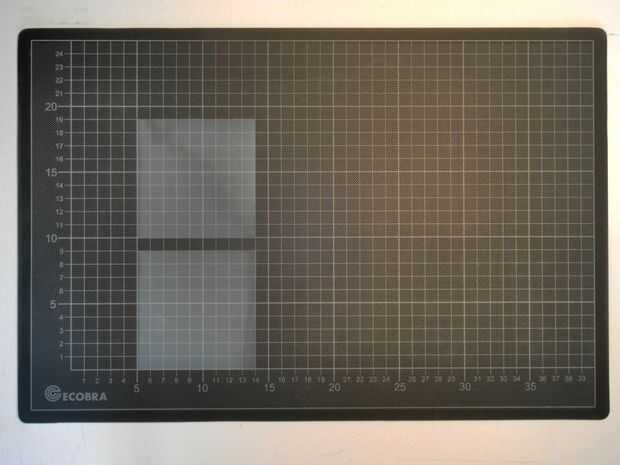 Tomé una carpeta transparente y cortar dos rectángulos (cuadrados en este caso) con 9x9cm usando un cuchillo del exacto.