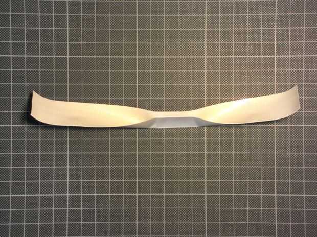 En una sección transversal debe tener una inclinado "U" en forma de cinta entre las manos, los dos lados pegajosos deben no ser tocan todavía.