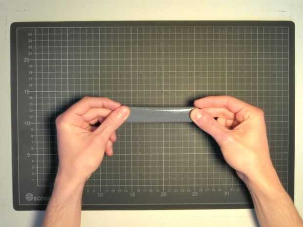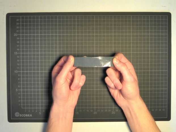 Doblez con el lado adhesivo hacia fuera y coloque los bordes uno sobre otro como para doblar la cinta por la mitad.