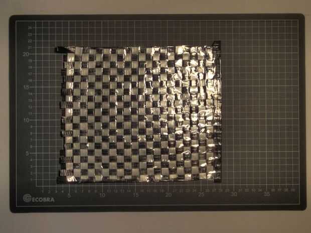 He utilizado tijeras para cortar cualquier exceso cinta y tener un tejido más o menos perfecto.