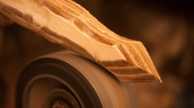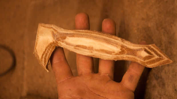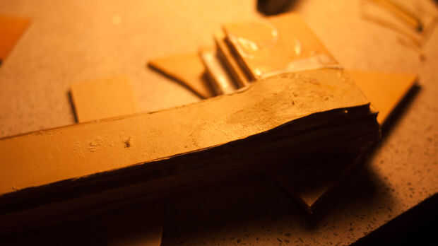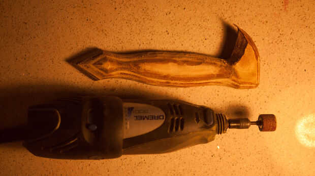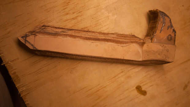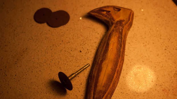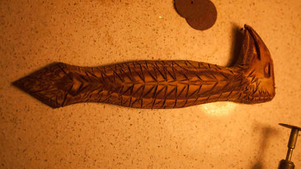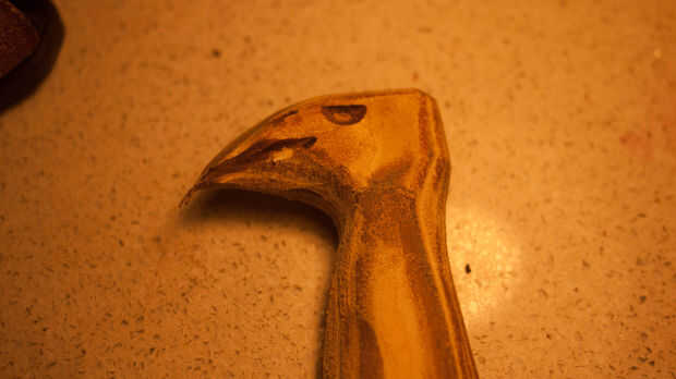 Ahora es tiempo para recoger todos sus recortes de cuero y pegamento junto con PVA para hacer un bloque sólido de cuero. Paja estos juntos en el punto de cabeza de águila para ahorrar en cuero y funcionó bien. Asegúrese de marcar cada pieza de cuero para crear una buena adherencia sobre el lado liso. Una vez que esto se ha dejado dos días puede empezar a esto de la arena en forma de águila. Soy afortunada porque tengo una lijadora ya establecida por lo que era más fácil. Si usted no tiene una lijadora, una dremel funciona también como terminan usando uno de los detalles más finos.